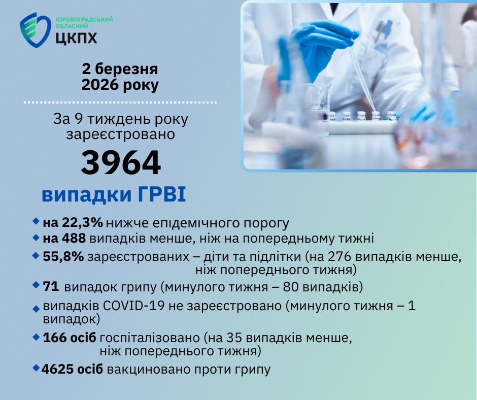 Епідемічна ситуація на Кіровоградщині: підсумки 9-го тижня року