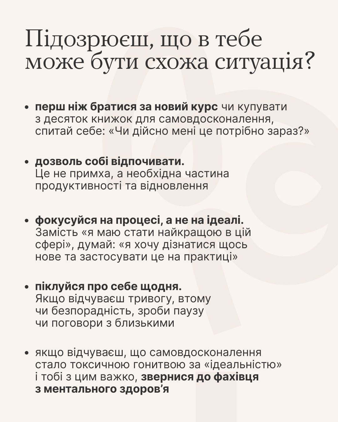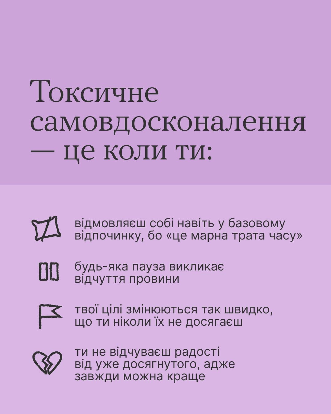 Постійне самовдосконалення може бути токсичним. Розповідаємо, як зрозуміти, що ти занадто тиснеш на себе, — у каруселі.