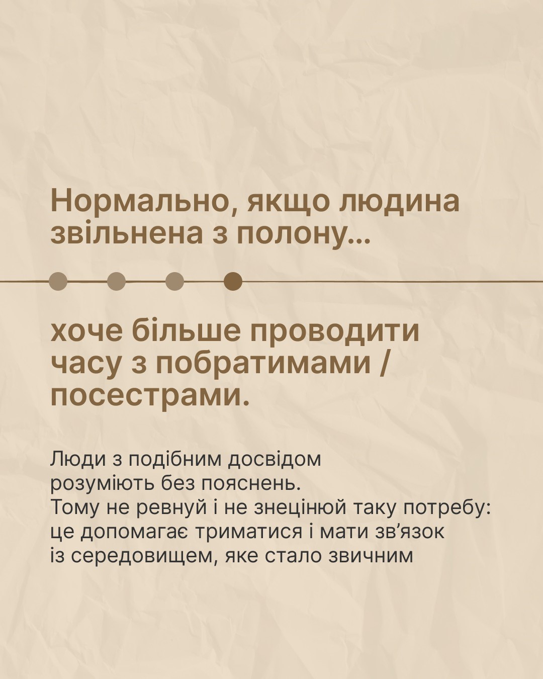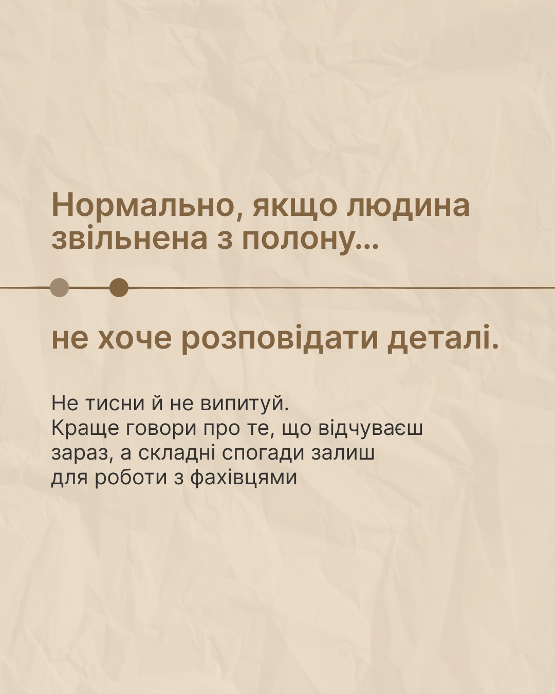 Більше про те, як взаємодіяти зі звільненими з полону, дізнайся з інфобоксу на платформі «Ти як?»: http://howareu.com/.../vzaiemodiia-zi-zvilnenymy-z-polonu...