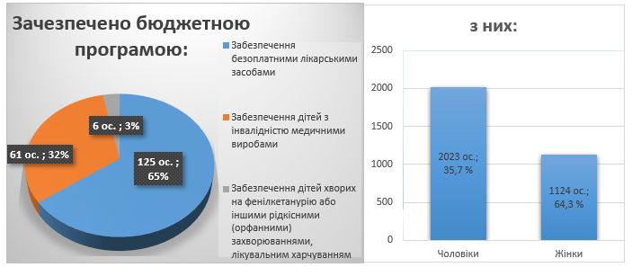 безоплатними лікарськими засобами – 125 осіб на загальну суму 1 020,0тис.грн, з них: