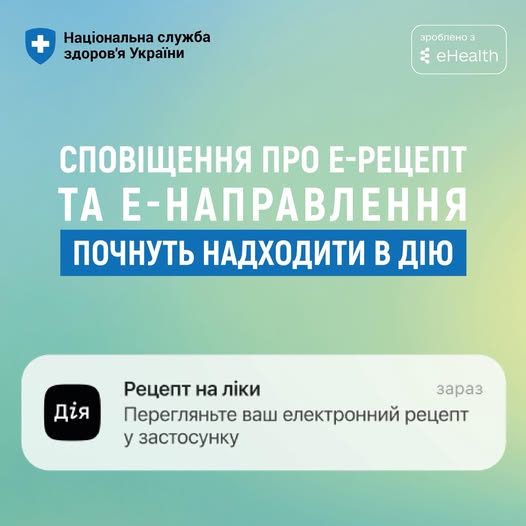 Тепер важливі повідомлення від електронної системи охорони здоров’я (ЕСОЗ) про е-Рецепт на ліки та е-Направлення на послуги ви отримаєте там, де вже користуєтеся держпослугами.